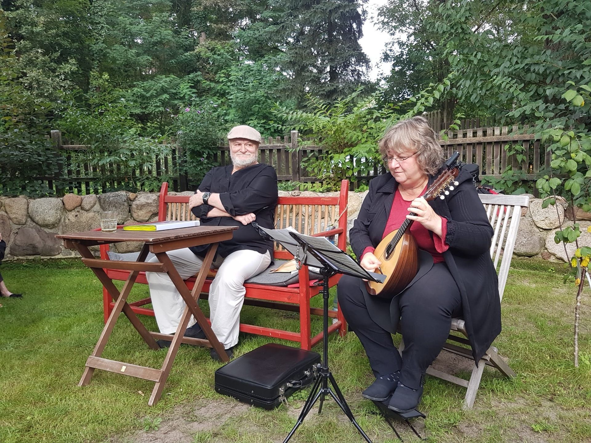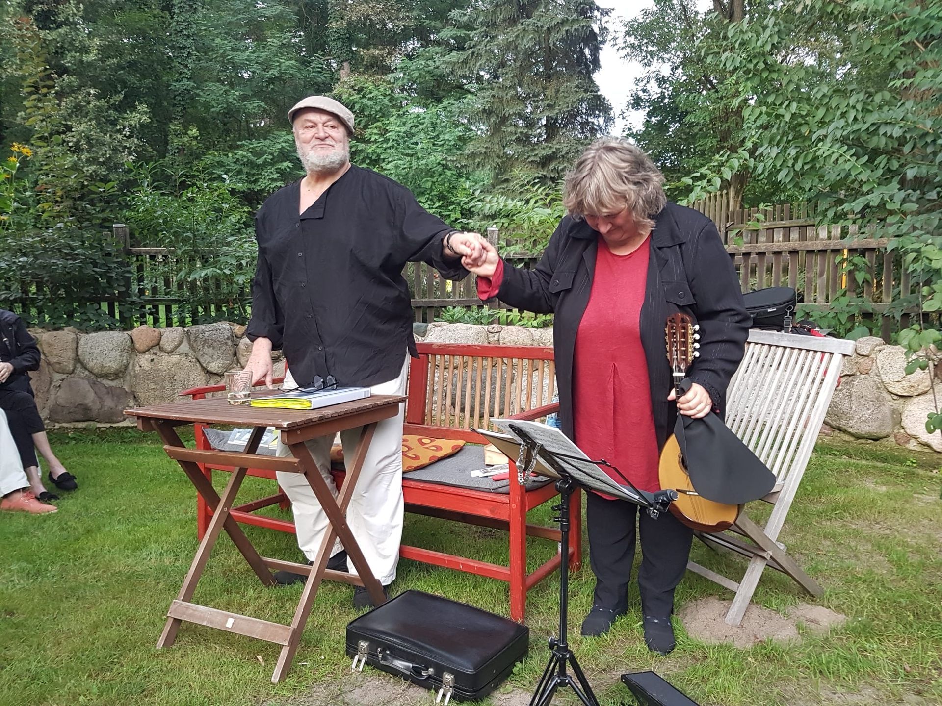 Zu dieser Lesung hat sich der Künstler mit der Lyrik starker Autorinnen beschäftigt und brachte gleich noch eine Musikerin mit. Mit den Klängen ihrer Ukulele verzauberte sie den schönen Garten endgültig.